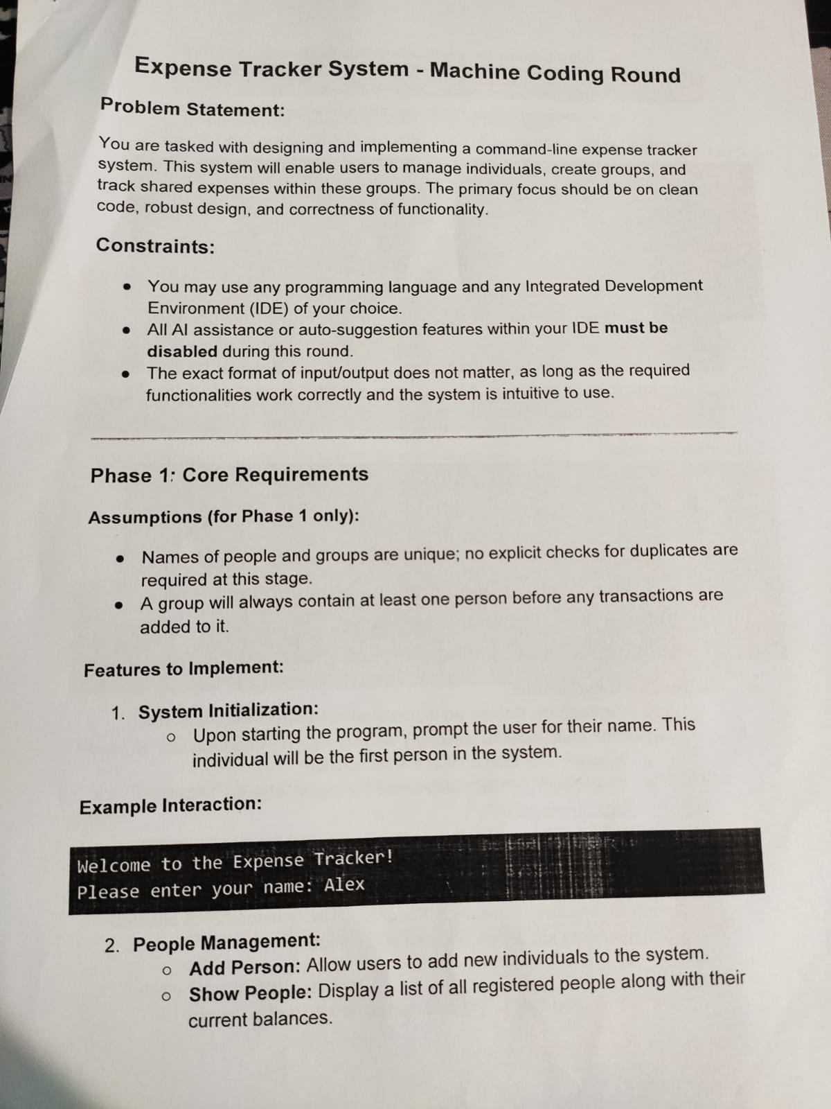 The solution should focus on back-end logic; no front-end or database implementation is required.